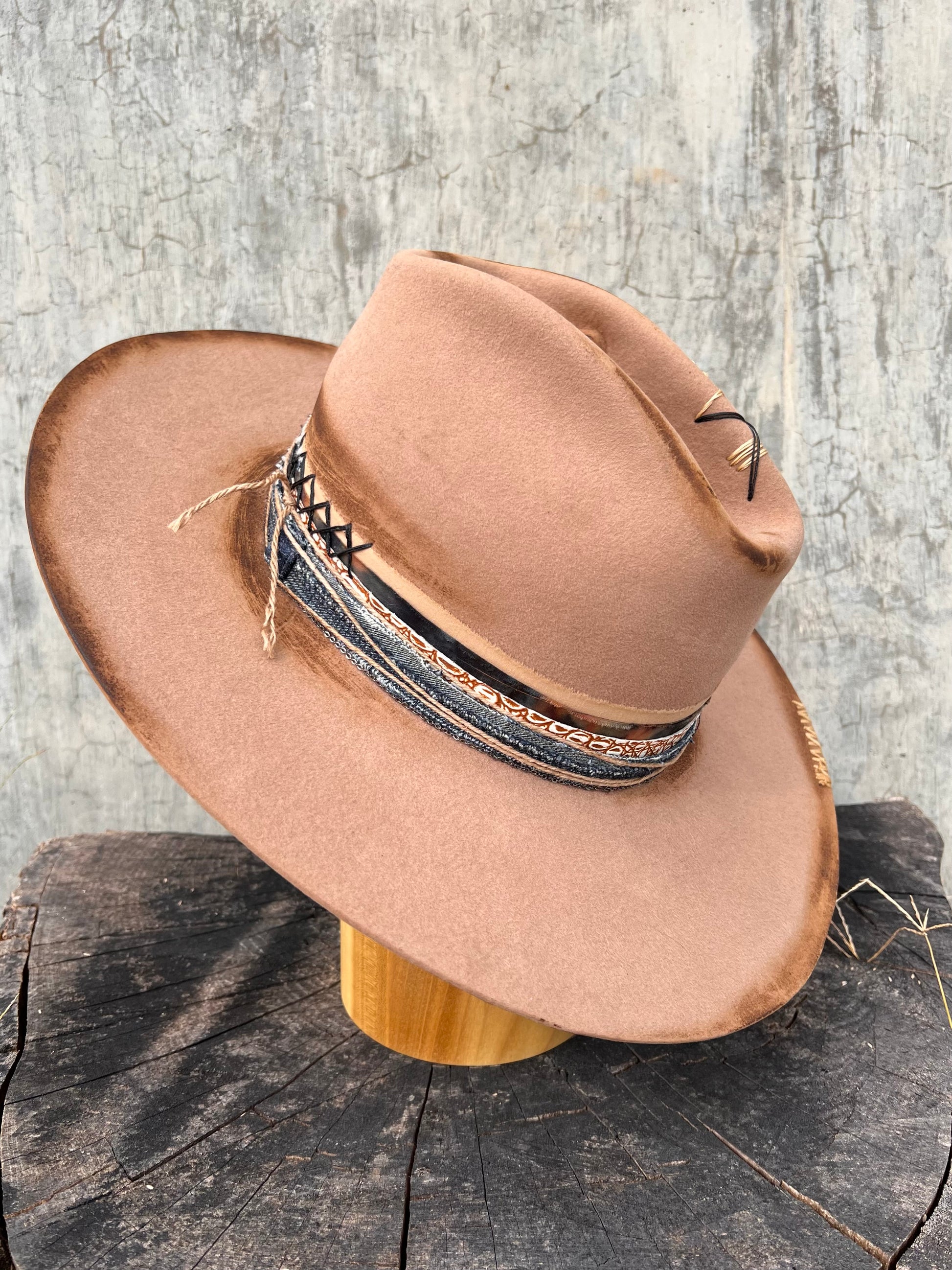 Tan, tiedye, faux crocodile, and denim bands