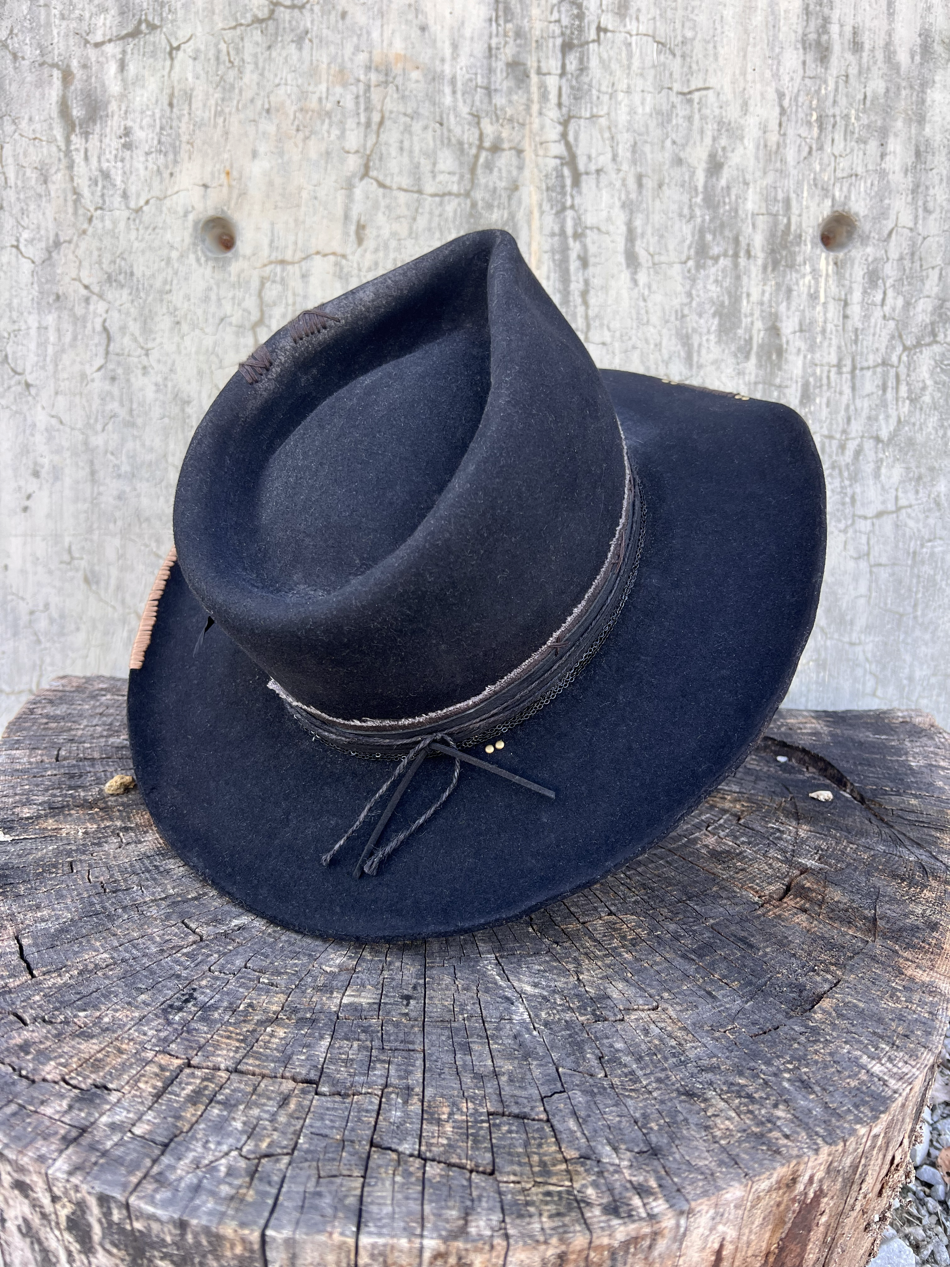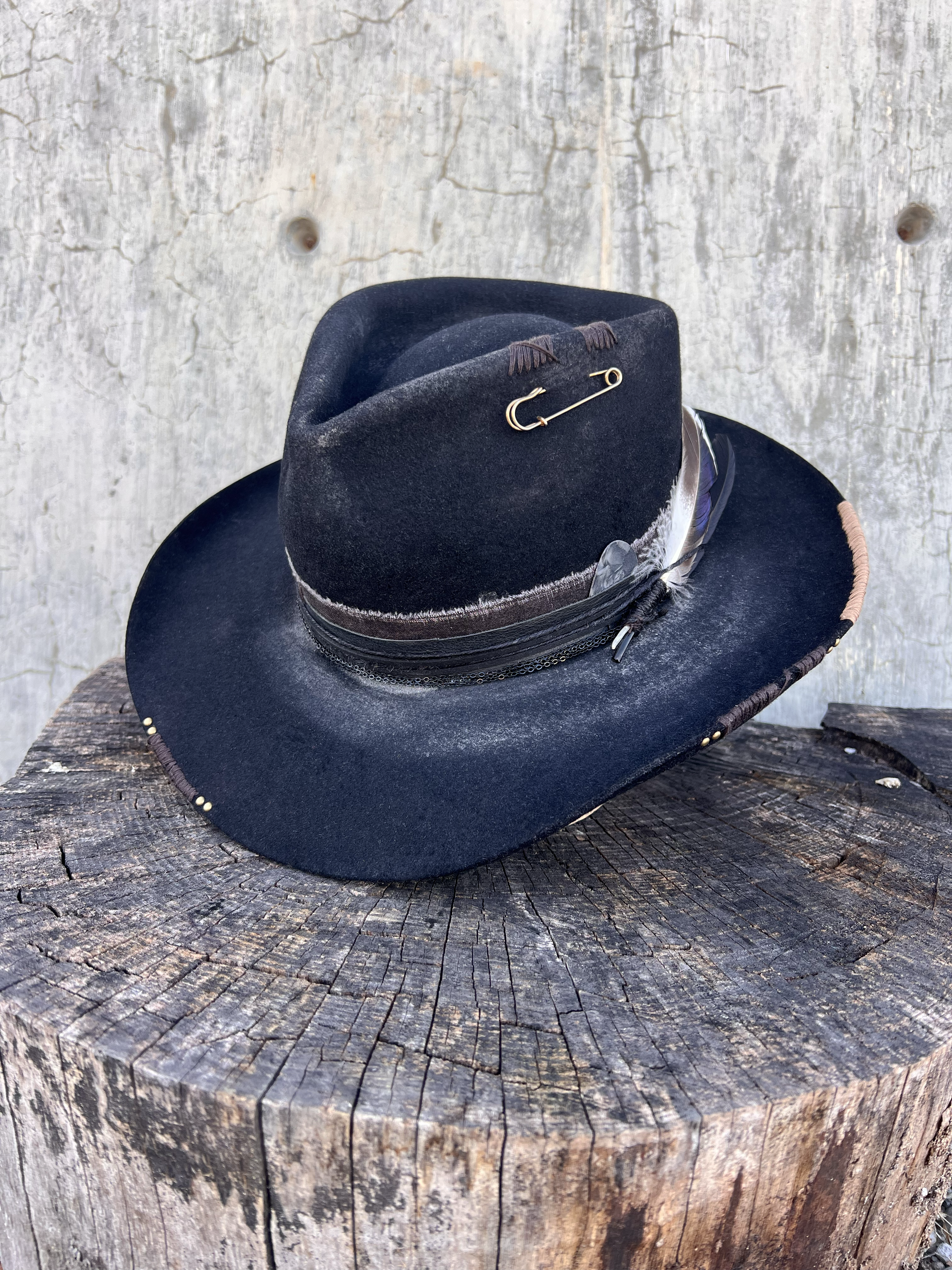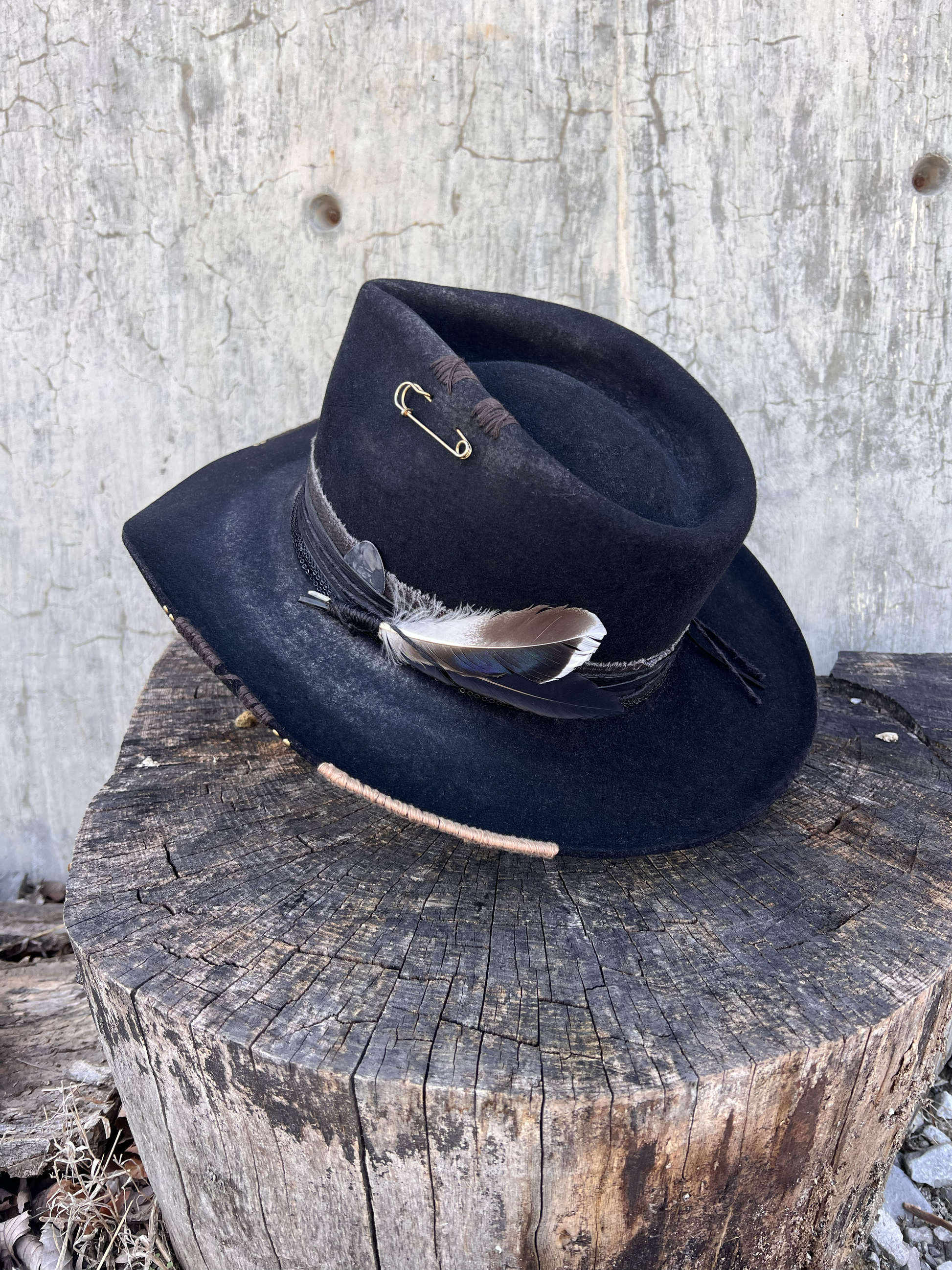 100% Black rabbit fur felt with white highlight